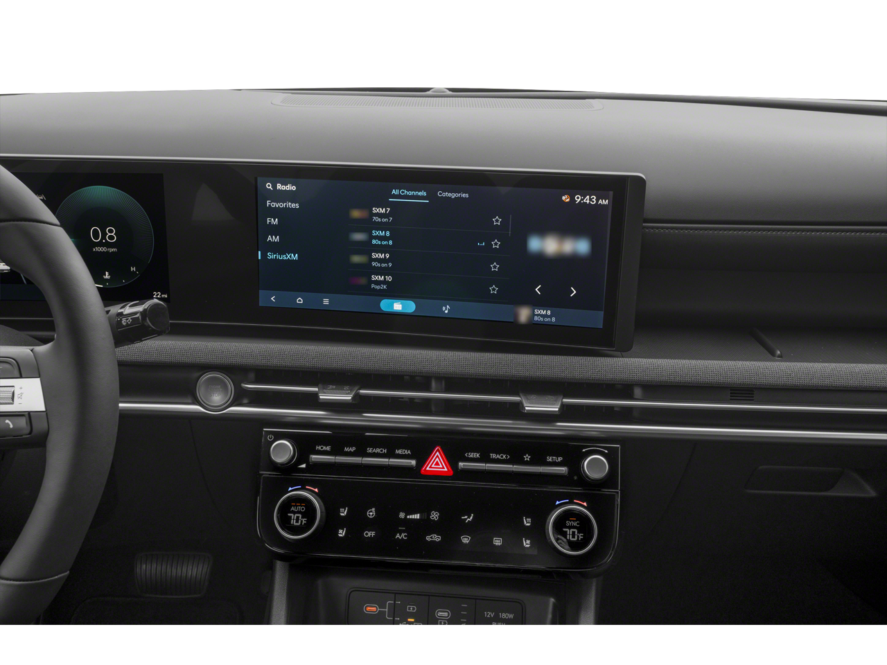 - Radio: AM/FM/HD w/Bose Premium Audio System -inc: 12.3" Audio-Video-Navigation (AVN) color touchscreen (ccNc) w/onboard navigation, 8 speakers, Blue Link+ connected car system, SiriusXM satellite radio w/3-month trial subscription, wireless Apple CarPlay and Android Auto integration, dynamic voice recognition, Over-the-Air (OTA) map updates and USB connectivity