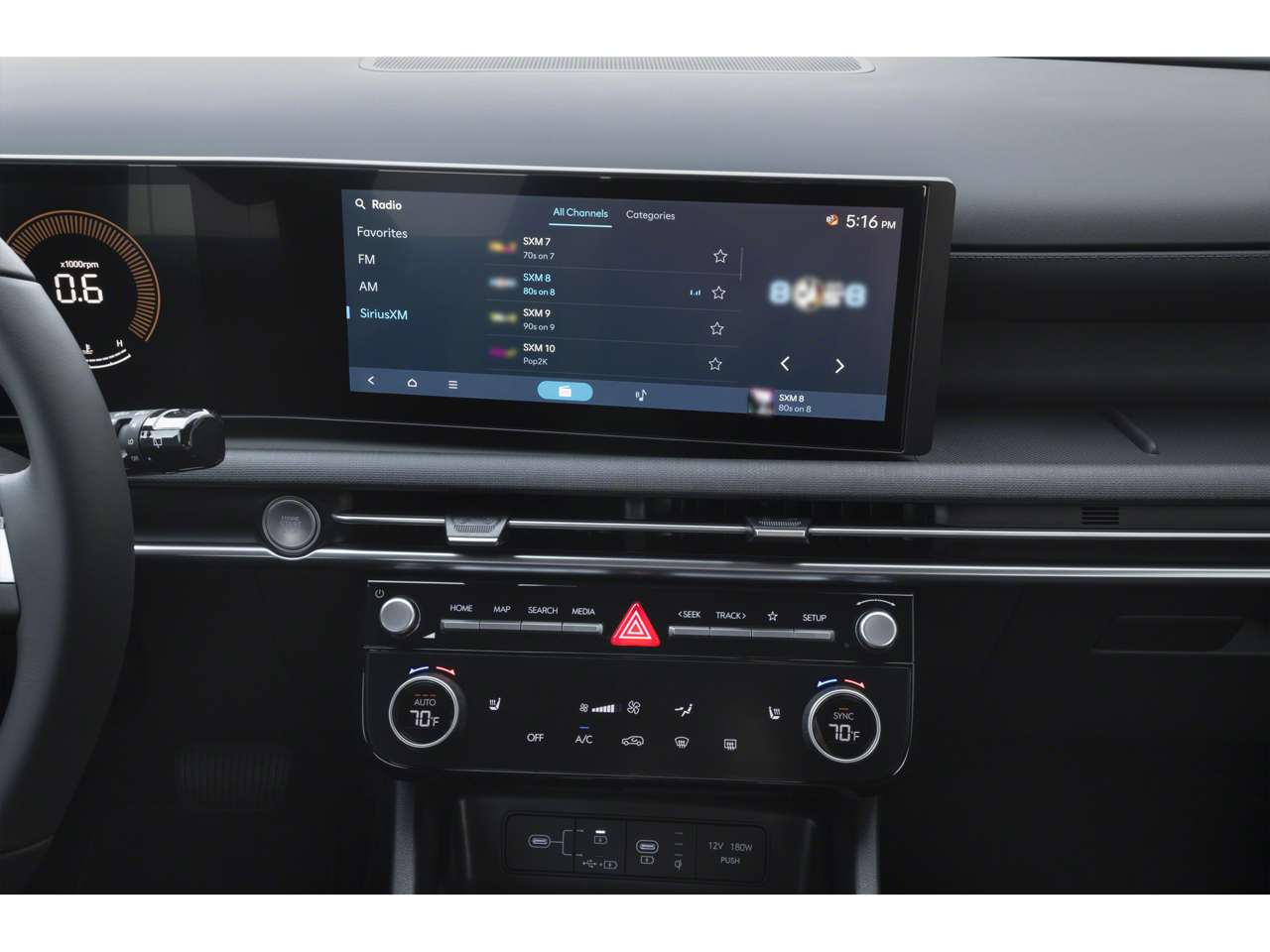 - Radio: AM/FM/HD Audio System -inc: 12.3" color touchscreen display, 6 speakers, SiriusXM satellite radio system (3-month trial subscription), wireless Apple CarPlay and Android Auto integration, controller OTA update capability, Blue Link connected car system and USB connectivity