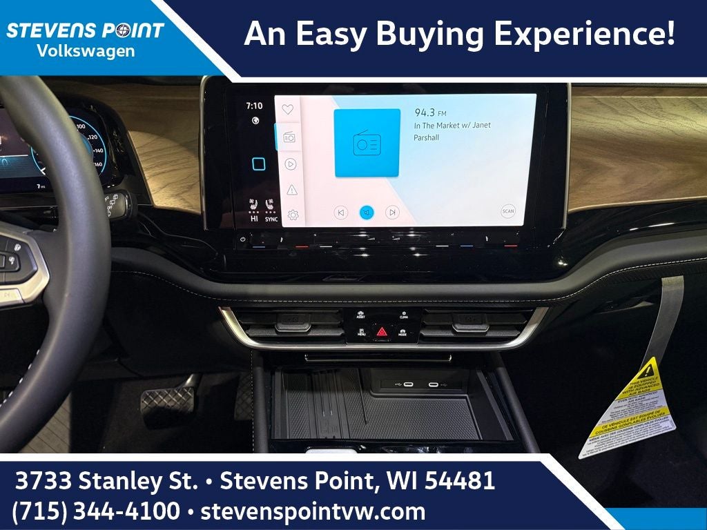 - MIB3 Composition Media -inc: 12" touchscreen multi-function center display, AM/FM/HD radio and WMA/MP3/FLAC player w/USB-C input, voice control, SiriusXM w/360L (w/3-month free trial subscription; 360L services require acceptance of SiriusXM terms), 6-speaker sound system, Bluetooth® connectivity (for compatible devices), capability for in-vehicle 4G LTE enabled Wi-Fi (cellular data plan required; includes limited trial), capability for connected vehicle services (capabilities for services vary; requires enrollment or subscription), App-Connect smartphone integration (w/Apple CarPlay, Android Auto and MirrorLink) via USB, wireless App-Connect smartphone integration (for compatible devices) w/multi-phone pairing capability and Qi wireless inductive charger up to 15W (for compatible mobile phones and accessories) in front row All connected vehicle services subject to terms and limitations. Some services, which include emergency assistance services, require a paid subscription. See dealer or vw.com/connected for important details.