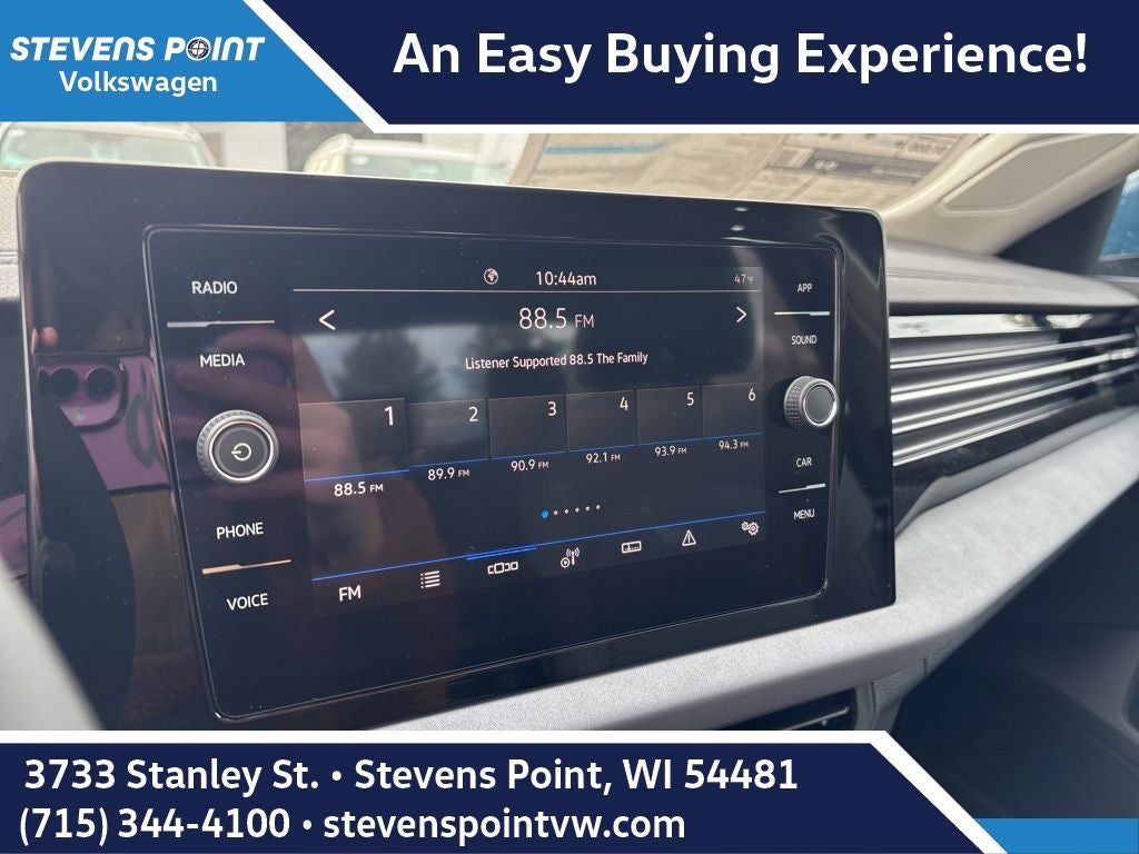 - Radio: MIB3 Composition Media w/8" Touchscreen -inc: AM/FM/HD Radio and WMA/MP3/FLAC player w/USB-C, voice control, 6-speaker sound system, Bluetooth® connectivity (for compatible devices), SiriusXM w/360L (w/3-month trial subscription; 360L services require acceptance of Car-Net terms), capability for in-vehicle 4G LTE enabled Wi-Fi (cellular data plan required; includes limited trial), capability for connected vehicle services (capabilities for certain services vary; requires enrollment or subscription), App-Connect smartphone integration (w/Apple CarPlay, Android Auto and MirrorLink) via USB, wireless App-Connect smartphone integration (for compatible devices) w/multi-phone pairing capability, USB-C enhanced charging, up to 45W (for compatible devices) and Qi wireless inductive charger (for compatible mobile phones and accessories) All connected vehicle services are subject to terms and limitations. Some services require a paid subscription. See dealer or vw.com/connected for important details.