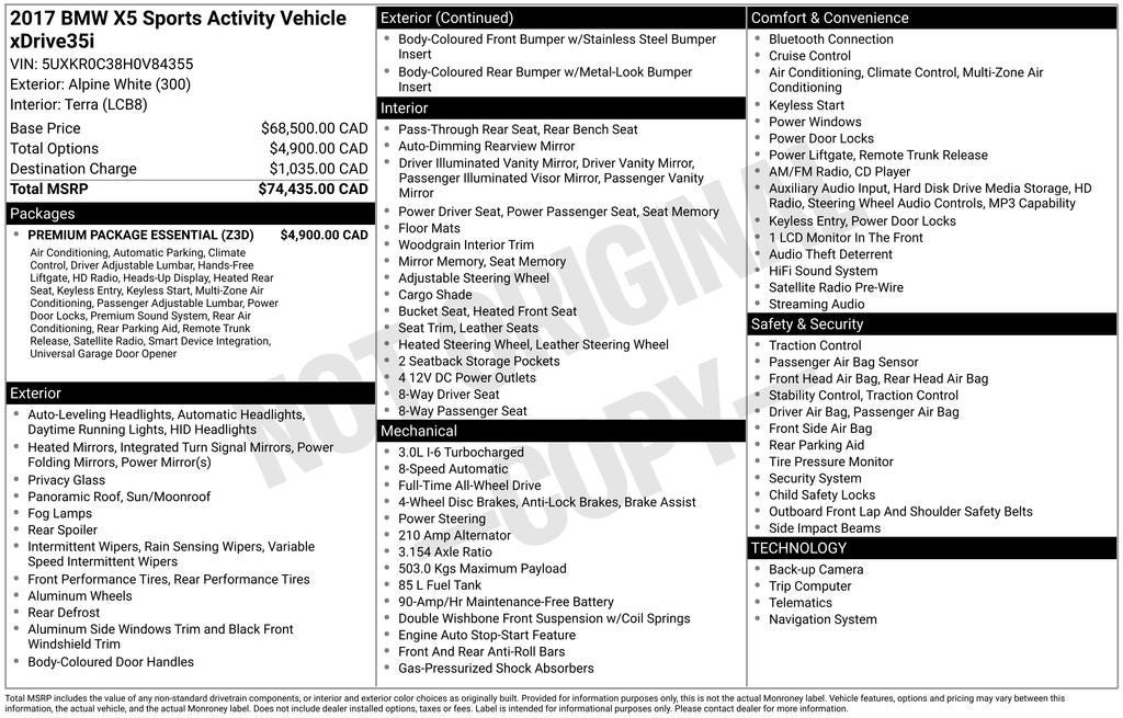 Alpine White 2017 BMW X5 xDrive35i 4D Sport Utility AWD 8-Speed Automatic 3.0L I6 DOHC 24V TwinPower Turbo