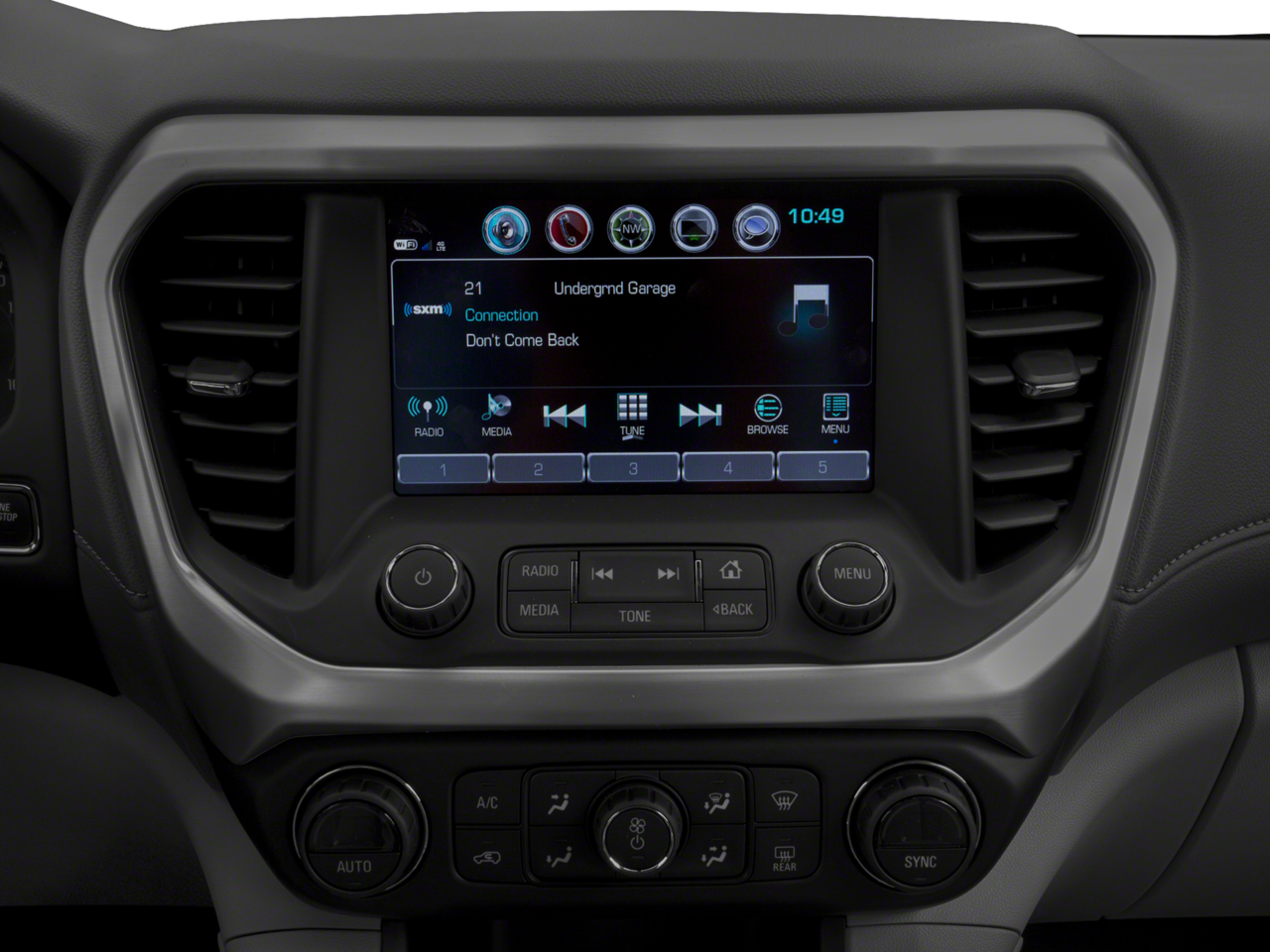 - Audio system, 8" diagonal Color Touch Screen with GMC Infotainment System, AM/FM/SiriusXM USB ports, auxiliary jack, Bluetooth streaming audio for music and most phones, advanced phone integration featuring Apple CarPlay, Android Auto and voice-activated technology for radio and phone (Upgradeable to (IO6) 8" Diagonal Color Touch Screen Navigation with GMC Infotainment System.)