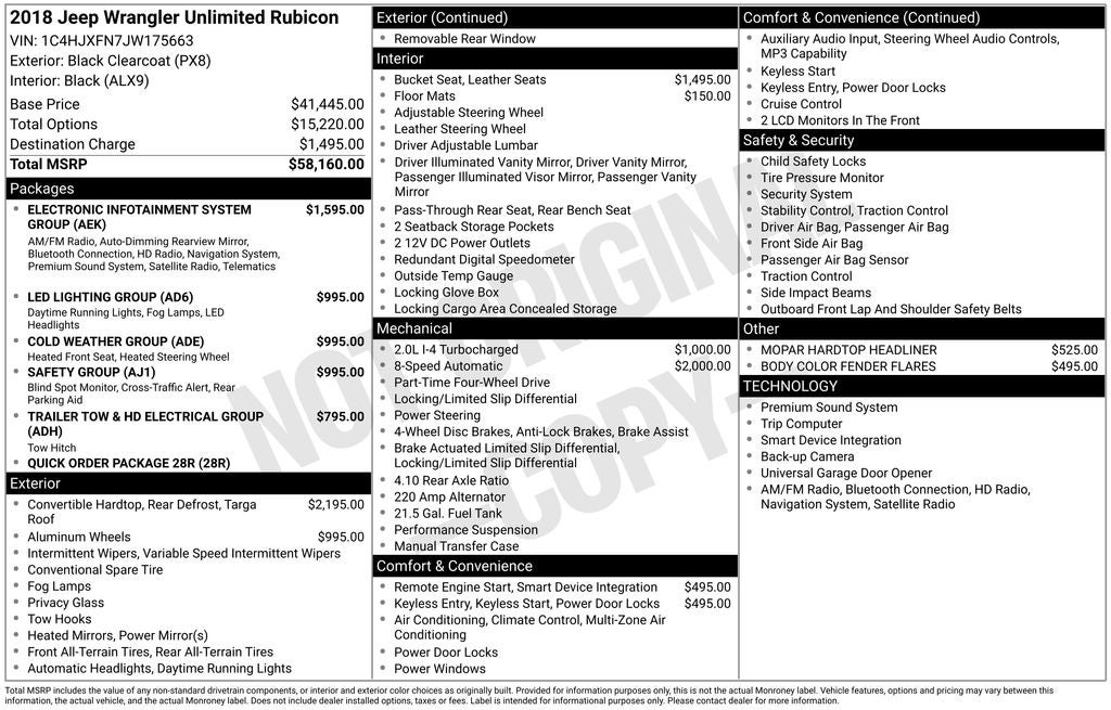 Owning this 2018 Jeep Wrangler Unlimited Rubicon means embracing a lifestyle of freedom and exploration. Its impressive features, exceptional capability, and timeless style make it the perfect choice for those who demand the best. We invite you to experience this remarkable vehicle for yourself. Contact us today to schedule a test drive and discover the true power of the Jeep Wrangler Unlimited Rubicon.