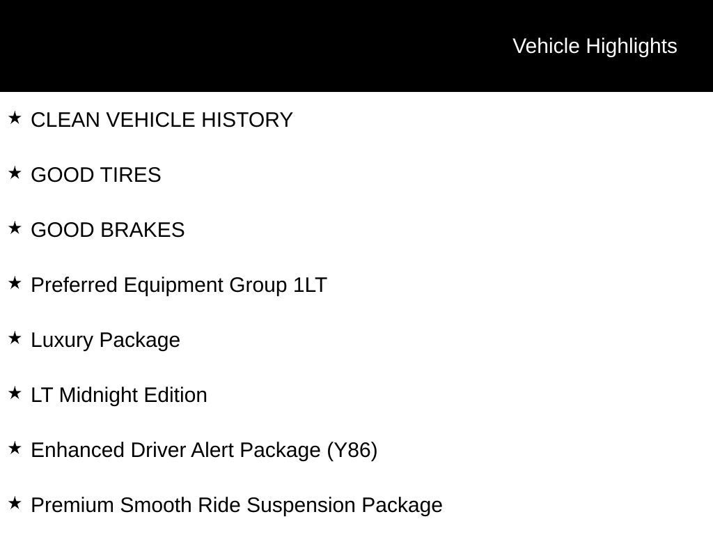 - Enhanced Driver Alert Package includes (UEU) Forward Collision Alert, (TQ5) IntelliBeam headlamps, (UHY) Low Speed Forward Automatic Braking, (UHX) Lane Keep Assist with Lane Departure Warning and Safety Alert Seat