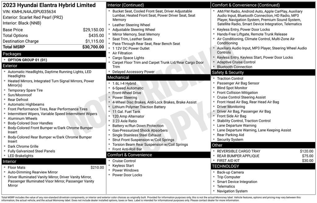 - Vehicle Name: Hyundai Elantra Hybrid