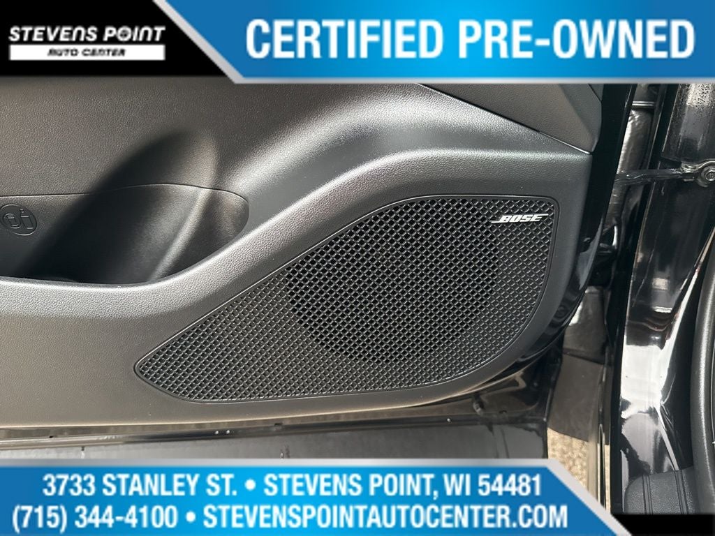 - Radio: Bose Premium w/AM/FM/HD/SiriusXM Audio System -inc: 10.25" color touchscreen w/onboard navigation and traffic flow including incident data via HD Radio (HERE) (AVN 5.0), 8 speakers (1 twiddler on center of instrument panel, 2 tweeters, 2 front door, 2 rear door, 1 woofer on rear quarter panel), digital 8 channel amp w/custom equalization, digital signal processing and dynamic speed compensation, Bluelink connected car system, Bluetooth® w/voice recognition, wired Apple CarPlay and Android Auto and USB connectivity